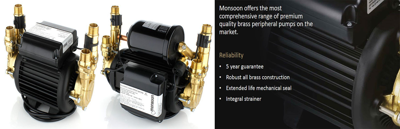 Stuart Turner Monsoon pumps are a range of high performance, premium quality, brass domestic shower pumps and come with a 5 year manufacturer’s warranty. Have a look below at the most commonly installed models.