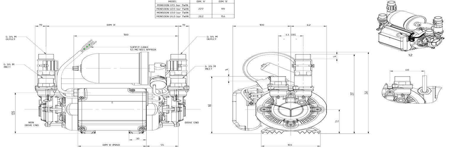 Stuart Turner Monsoon Universal Positive Head 3 Bar Twin Pump
